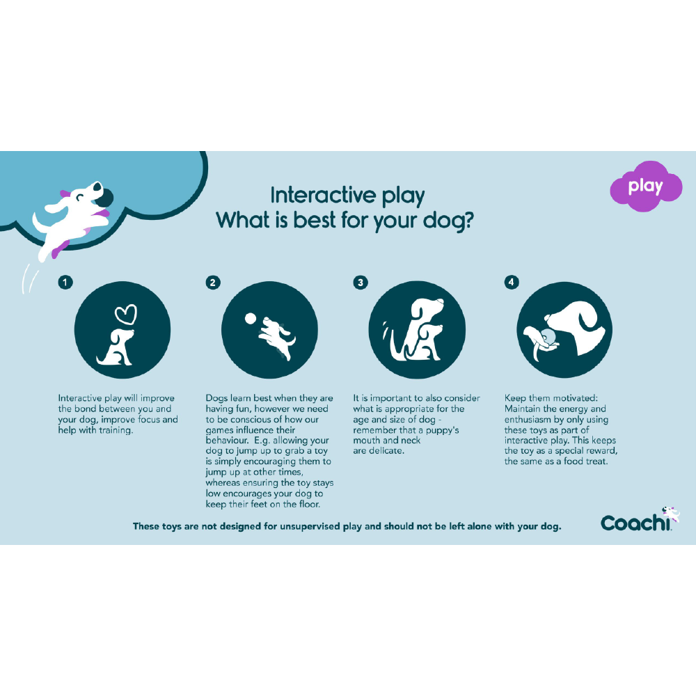 3. FUN TRAINING – The Coachi reward toys have been designed for you and your dog to have fun together whilst training. They are great for improving recall and discouraging chasing & perfect for agility.