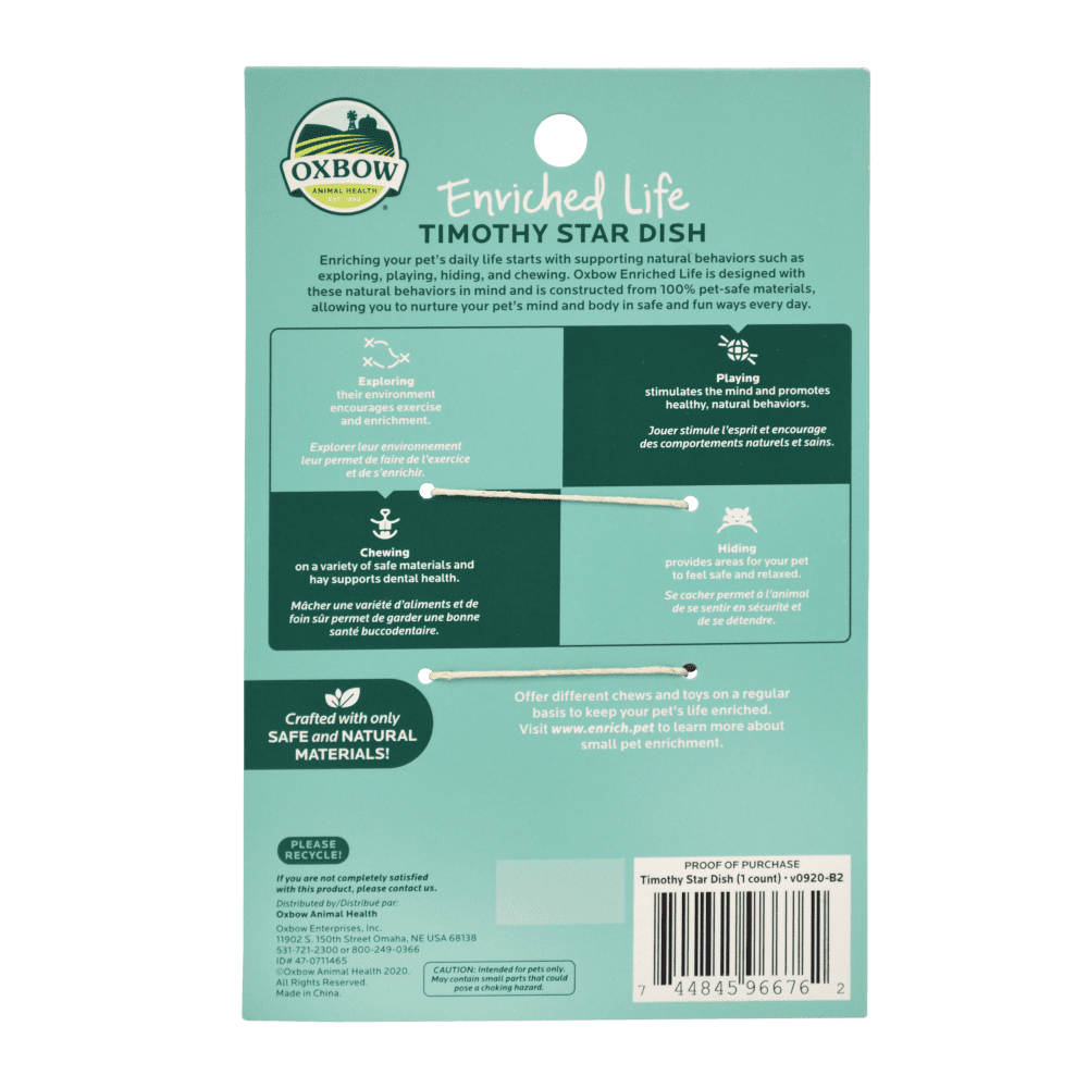 Enriching your pet’s daily life starts with supporting natural behaviors such as exploring, playing, hiding, and chewing. Oxbow Enriched Life is designed with these natural behaviors in mind and is constructed from 100% pet-safe materials, allowing you to nurture your pet’s mind and body in safe and fun ways every day.