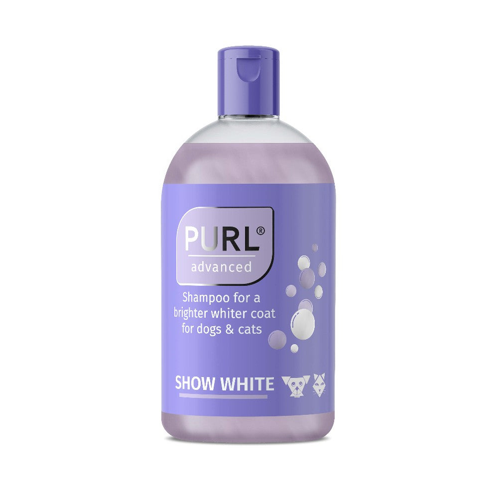 The PURL range of shampoos was developed for all skin and hair types. Show White: Contains advanced brightening actives (no bleach) that whiten, brighten and enhance the appearance of white-coated dogs & cats.