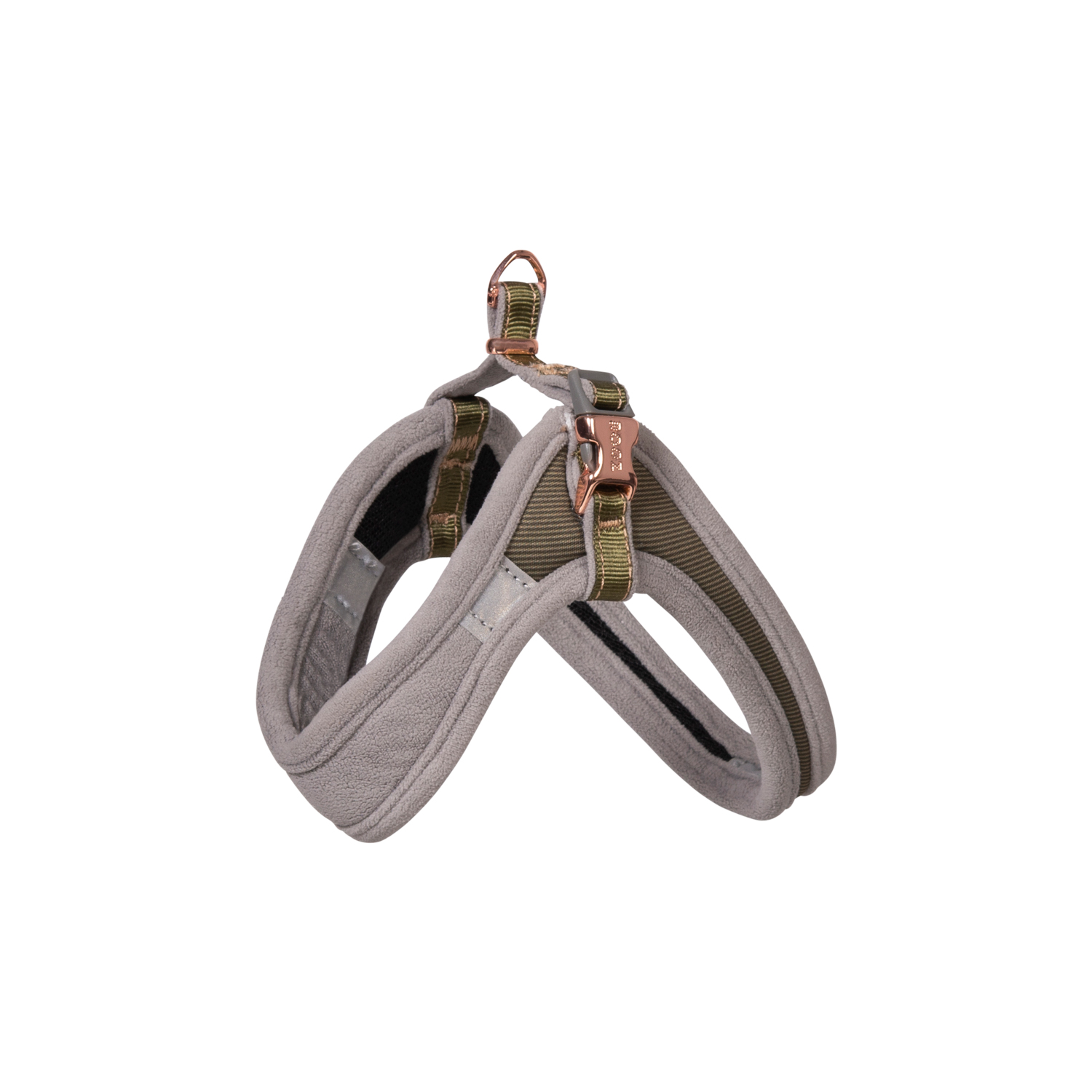 Rogz AirTech Sport Harness, it is quick and easy to fit. The belay loop on the harness allows for a lead attachment and when used with AirTech leads, the carabiner slides side to side for freedom of movement for both adventurer and fur companion.