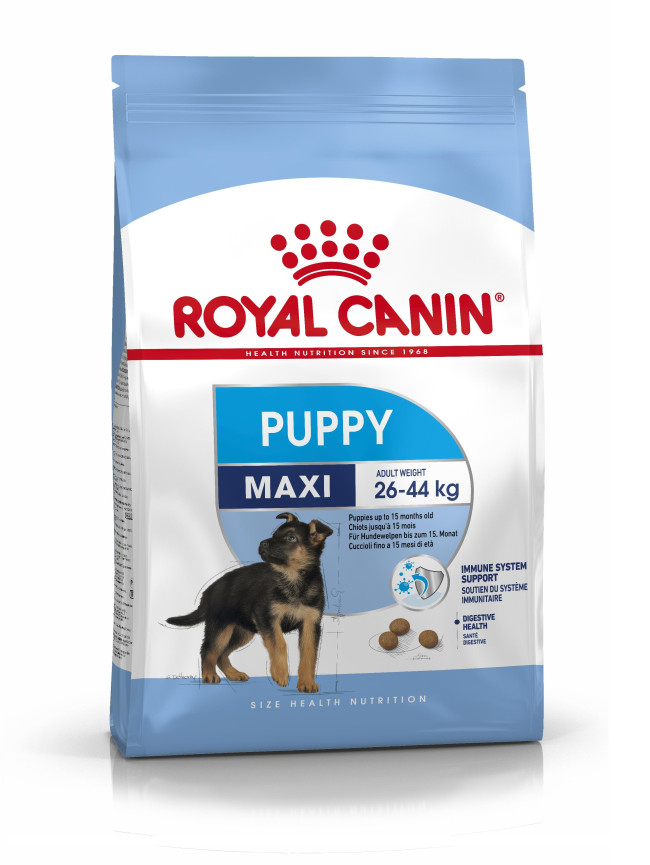 The Royal Canin Maxi Junior Puppy Food is designed for large breed puppies (adult weight between 25 to 45 kg) up to 15 months.