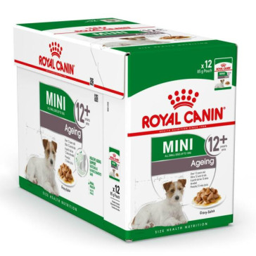 Royal Canin Mini Adult Ageing 12 Wet Food Pouches is suited for senior small breed dogs (from 1 to 10 kg) – Over 12 years old.