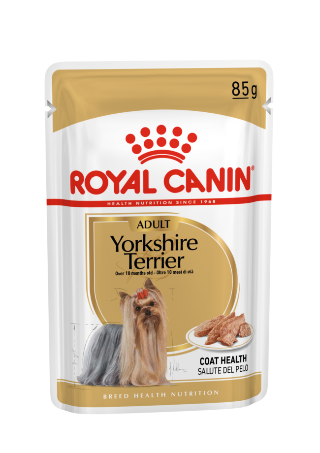 The Royal Canin Yorkshire Terrier Dog Food Pouches is specially for adult and mature Yorkshire Terriers – Over 10 months old (loaf).